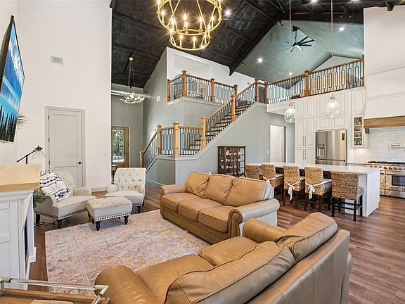 Welcome to 7776 N. Fairport Ave, where timeless design meets cutting-edge comfort. Nestled on over five acres of serene land, this exceptional 4-bedroom, 3.5-bath custom-built home blends modern luxury with thoughtful craftsmanship. A stately circle driveway welcomes you home, surrounded by new landscaping, lush greenery, and the natural beauty of wild blueberries, blackberries, and beauty berries scattered across the property. Beginning with the spectacular 30-foot vaulted ceilings, the living spaces flow effortlessly with exquisite high-end lighting that highlights every custom detail. The hand-crafted staircase sets an elegant tone, leading you into a chef’s kitchen designed for both function and flair. Featuring a 48-inch gas stove with double ovens, a pot filler, motion-activated and smoke-sensing range hood, farmhouse sink, under-cabinet lighting, and all-wood cabinets paired with Taj Mahal quartzite countertops, this kitchen is the heart of the home. A hidden walk-in pantry adds to its efficiency and charm. Every inch of this home is built for comfort and performance. Eight-inch spray foam insulation ensures energy efficiency, while a two-stage air conditioning system with upgraded metal returns keeps temperatures consistent. The home also features high-impact windows, Uponor PEX-A plumbing, and exposed commercial-grade, double-insulated spiral ductwork. An instant gas hot water heater provides endless, efficient hot water on demand. The high end features include, 10-foot bedroom ceilings, 8-foot solid core doors, and with marble and quartzite showers, top-of-the-line fixtures, and spa-like bathrooms providing the perfect retreat. Upstairs, a spacious loft and game room with a projector-ready area create an ideal setting for entertainment. A dedicated office offers quiet space for work or study. Outside, the handcrafted cypress timber-frame front porch and hurricane-rated glass roll-up garage doors make a bold architectural statement. The oversized concrete back patio offers plenty of room for gatherings, and the fenced-in dog yard with private entry makes this home perfect for pet lovers. Surrounded by nature, the property’s five-acre setting provides privacy, space to roam, and the peaceful atmosphere of country living — all enhanced by its modern amenities and design.