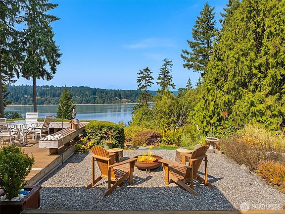 NW contemporary design meets waterfront serenity in this exceptional home with expansive west-facing views of the Olympic Mountains and Puget Sound. Thoughtfully designed for one-level living, the residence offers effortless flow and walls of glass that frame the ever-changing vistas. Set on 2 sun-drenched acres, the property features 160 feet of high-bank waterfront with beach stairs, established gardens, and fruit trees—creating a private retreat in a stunning natural setting. A separate guest space off the garage provides flexible options for visitors or work-from-home needs. A rare opportunity to enjoy custom NW style, picturesque views, and a lifestyle defined by beauty and privacy. OFF-MARKET SALE.