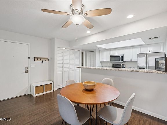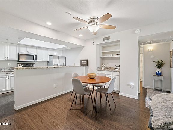 Spacious 2BD/2BA condo in the heart of Old Town Scottsdale! Both bedrooms are large enough for a bed and desk; the primary features an en suite bath. Enjoy updated stainless steel appliances, freshly painted cabinets, walk-in pantry, wet bar, and in-unit washer/dryer. Natural light fills the open layout, and the private balcony offers a perfect retreat. This unit is just walking distance from one of the two pools and spas available to its residents. Walk to Scottsdale's top attractions—Giants spring training, Fashion Square Mall, dining, and more. Come and see!