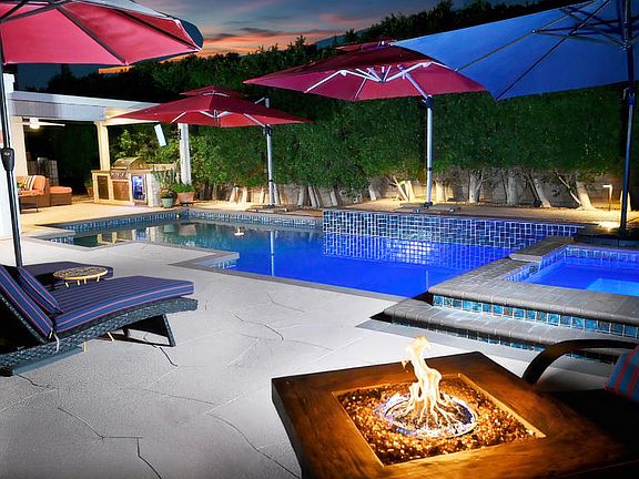 Open kitchenResort-style outdoor entertainment areaSoaring ceilingsImpeccable landscapingSeparate bar areaStainless steel appliancesCustom-built outdoor kitchen