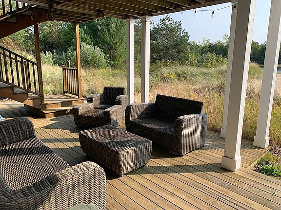 The perfect lakefront home less than 2 hours from Chicago. Nestled between the resort towns of South Haven and St. Joseph with great restaurants, breweries, shopping and festivals, make this 5-bedroom, 3.5-bathroom house your pandemic escape! The setting is a quiet, 2.5-acre wooded lot surrounded by beautiful, mature trees directly on a small sand-bottom inland lake (non-motorized). Enjoy swimming, fishing, canoeing, paddle boarding or enjoy a game of volleyball on the sandy beach. This farmhouse-style home has a gated entry, vaulted ceilings and is completely turnkey with all furnishings and beach toys included so you can begin enjoying it right away. Additional features include fireplace, large master on suite, huge deck, maple & ceramic flooring and quartz counters. For those wanting to attend school or work remotely, the home has gig speed internet already installed and ready to go. Newly added 20kw whole house generator means you never have to worry about losing power.