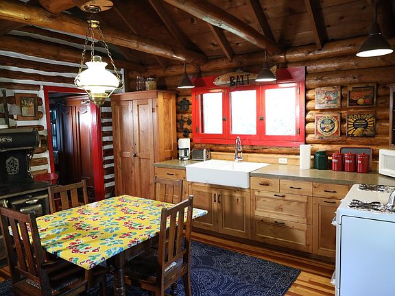 Lovingly restored log cabin with a million dollar view of Burnett County’s largest lake sits on a big, beautiful lot with a combination of open and wooded level yard space all around the cabin. It’s vintage aesthetic transports you to a simpler time with character-quality chinking, vaulted ceilings with log beams, wood floors, wood burning stove, wrap around enclosed porch and covered exterior porch. Modern updates for easy living include natural gas burning stove, updated kitchen with farmhouse style sink and custom cabinets with soft close, 200 amp electrical, drilled well, conventional septic and sleeps many! Heated and insulated garage was built in 2005 and has a nice staircase to space above. Yellow Lake is known for world class fishing and boating with access to Little Yellow Lake, the Yellow River and is boatable to restaurants. Everything here is included to maintain the perfectly curated feel!