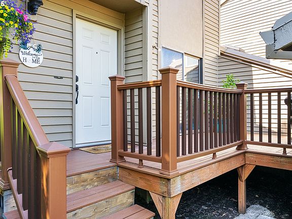 Open Saturday, 5/31, 11:00-1:00. This end-unit townhome offers a practical floor plan with the kitchen being open to the living room that leads to the private, fenced back area with a newer composite deck. The large kitchen has newer stainless appliances, tile flooring, and a sliding door that leads to a private composite deck between the house and the garage. There's a convenient 1/2 bath on the main floor and the second floor features a laundry space and two primary suites (one with a built-in window seat) with private baths. Both primary baths have been updated with LVP flooring. The roof on the home is brand new, A/C is 2 years old, and the hot water heater is also brand new. There's a beautiful green space between the buildings in this quiet and peaceful setting. Welcome home!