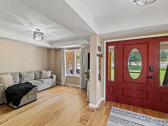 Tucked in the serene and spacious Windsong Ranch neighborhood, this beautifully updated and meticulously cared-for home offers mature landscaping, and the inviting charm on nearly 2 acres of in-town horse property with unobstructed mountain views. From the moment you arrive, you'll appreciate the long driveway the leads to an oversized 3-car garage with ample space for vehicles, toys, or a workshop.Inside, real wood floors flow throughout the main level, complemented by vaulted ceilings and a striking stone fireplace that creates a warm, elegant atmosphere. The updated kitchen and fixtures, along with newer appliances, offer turnkey convenience.Downstairs, the walk-out basement with brand new carpet is an ideal retreat for kids or guests, opening directly to the fully fenced backyard.Enjoy Colorado's sunshine and natural beauty from four separate outdoor living areas! A welcoming front patio perfect for sunrise coffee. Spacious back patio designed for entertaining. A lower patio with hot tub and seamless backyard access. And, a private deck off the primary suite to soak in sunsets and mountain views!Other highlights include, new roof (2020), furnace, A/C, and water heater replaced in 2019. This is a rare opportunity to enjoy the peace and privacy of a rural setting with all the conveniences of an in-town location. Move-in ready and built to impress-this one is a must-see!