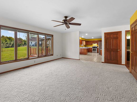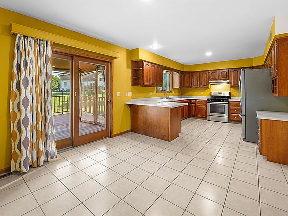 Expansive 4+ bedroom, 2.5 bath home offering just over 3,000 sq ft. Updates include hardwood floors in the foyer, dining room, living room, and half bath (2023). The huge kitchen offers tons of storage, an eat-in area, and a great room w/wood-burning fireplace and deck access. A formal dining room and main level laundry featuring a dog/utility shower (2022) complete the main floor. Your 3+ car heated garage also offers low-maintenance epoxy floors, a separate electrical panel, and insulated walls, allowing for projects year-round. Upstairs, the spacious primary suite includes a large walk-in closet & attached bath with dual vanities & a jetted tub. The finished lower level boasts a wet bar, family room, and den, plus storage galore! (plumbed for additional toilet). Showings start 10/1.