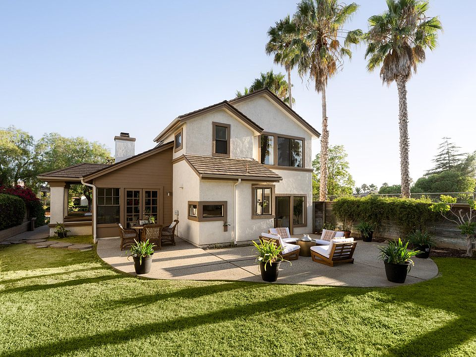 Enjoy mountain views and cul-de-sac serenity in this light-and-bright renovated Villa San Marcos home! Extensive upgrades include all new floors, all new kitchen appliances, renovated bathrooms, updated lighting and fixtures, new paint, and more! Spanning nearly 1,900 sq. ft, the 3 bed/2.5 bath home is spacious and inviting: Dramatic vaulted ceilings create an open and airy ambiance, while a cozy living room fireplace beckons moments of relaxation. The roomy kitchen features abundant natural light, and the adjacent family room and formal dining area each offer access to the expansive patio and secluded backyard. Upstairs, the primary bedroom boasts mountain views and a bathroom suite with a large walk-in closet. Two additional bedrooms share a hall bath, and an upper level reading nook offers space for a desk and additional storage. On the main level, a dedicated laundry room, a half bath, and a 2-car attached garage complete the home's generous floor plan.
