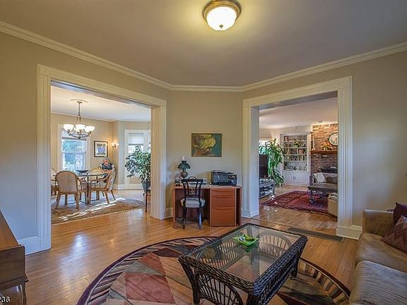 An open front porch welcomes you to this charming colonial with high ceilings, wide baseboards, moldings, built-ins and bay windows. Foyer leads to living room, dining room, kitchen, powder room. and nice size family room w fireplace, built-ins and bay window. Second level offers master suite w double closets and bath w skylight, jetted tub, separate shower and dual sinks. Two more bedrooms, full bath and office complete this level. Lovely finished bonus room with front and back windows on the third floor provide views of front and back yards. A family room, an exercise room w high ceiling and storage areas are found in large finished basement. Options for outdoor enjoyment include inviting front porch, newer deck off the kitchen and a patio by pool. Located near schools, town and NYC transportation.