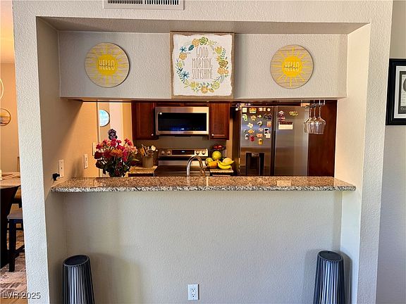 Welcome to Las Vegas Country Club. Enter through a 24-hour guard-gated entrance to this desirable first-floor corner unit. One of the most private locations in the community, situated along the 16th hole of the golf course and overlooking a sparkling pool. Inside, you’ll enjoy lush green views that feel more like a nature preserve than the desert. This move-in-ready condo features new luxury vinyl plank flooring, granite countertops, stainless steel appliances, and granite vanities in both bathrooms. In-unit laundry adds convenience, and every room feels bright and inviting. Las Vegas Country Club offers five pools, two hot tubs, BBQ areas, a fitness center, and 24-hour guard-gated security. HOA fees include water, sewer, trash, and all common-area maintenance. Located less than a mile from world-class dining, nightlife, shopping, and conventions, and within easy reach of UNLV and Harry Reid International Airport, this home offers the perfect blend of privacy, security, and location.
