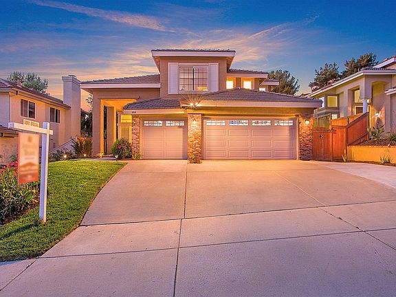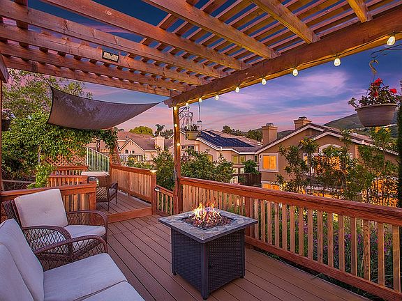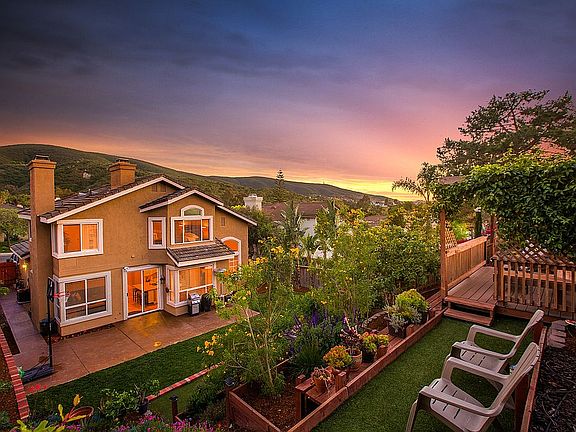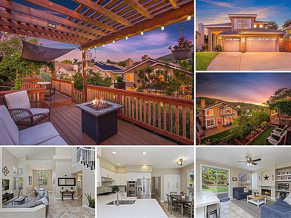 LARGE LOT WITH SPECTACULAR VIEWS in Discovery Hills at San Marcos! Gorgeous upgrades include a full kitchen remodel with quartz counters, stainless steel appliances, NEW cabinets + a fully remodeled master bath with NEW vanity, walk-in shower & tile flooring. Features include a downstairs bedroom/full bath, tile flooring throughout the 1st floor, hardwood floors at stairs and hallway + an incredible yard that backs to a large open space with built-in VIEW DECK, an array of producing fruit trees, and 3 car garage with epoxy flooring! Near Discovery Lake & trails!