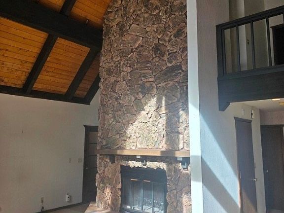 Ample parkingLarge wraparound deckNatural landscapingStunning two-story stone fireplaceCorner lotSpacious great room