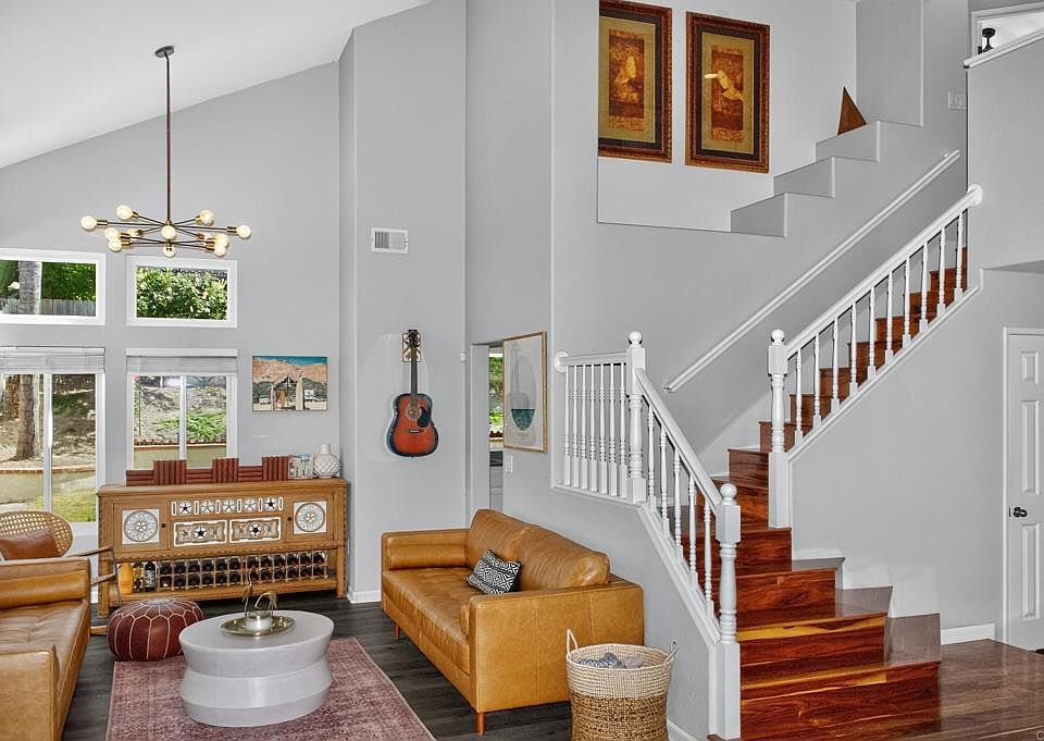 Spacious and serene, well located beautiful home on a double cul-de-sac within the community of Rancho del Oro. This warm, inviting home features high ceilings and great natural light with four bedrooms and three full bathrooms (including one bedroom and full bathroom downstairs). The spacious primary suite has an ensuite and walk-in closet, while a secondary bedroom offers direct bath access. The well-designed kitchen includes a pantry, and the great room boasts a fireplace and dining area with easy patio access—perfect for BBQs and entertaining. The fully fenced backyard is ideal for gardening and pets. Additional highlights include a three-car garage with new automatic doors, a separate laundry room and a double cul-de-sac location near parks, shopping and easy highway access to the beach and local wineries and breweries.
