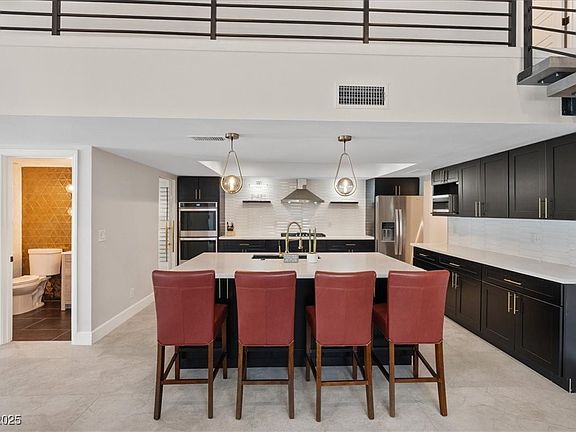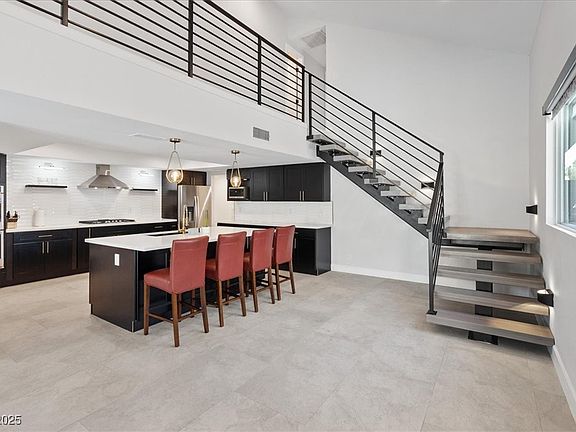 A Must See! Golf course living, Strip views, and resort-style luxury in the heart of Las Vegas. This MODERN showpiece in the historic GUARD GATED Las Vegas Country Club Estates blends iconic glamour with today's sophistication. Featuring dazzling golf frontage (15th Hole) and a sparkling pool and spa, this is the ultimate Vegas retreat. This historic home recently received a designer REMODEL, featuring soaring vaulted ceilings, Italian tile throughout, a stylish floating staircase, refrigerated wine room, wet bar and chef's kitchen, complete with quartz countertops, espresso shaker cabinets, and new stainless steel appliances. The OPEN FLOOR PLAN includes 3 bedrooms, 2.5 baths and a 2 car garage. Upstairs, the massive primary suite offers a spa-inspired bathroom, new floor-to-ceiling windows, and a balcony with sweeping golf course views. Too many upgrades to list. Experience true Las Vegas style in the only country club adjacent to the World-Famous Las Vegas Strip. Viva Las Vegas!"
