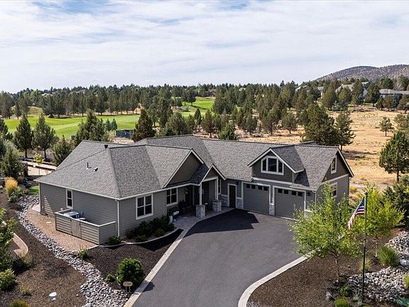 Discover unparalleled resort style living in this exquisite Custom Northwest style golf course home located on the 8th Fairway of the Challenge Course in The Falls 55+ community on a tranquil cul de sac. This single level 4 bedroom, 2.5 bath residence offers an inviting open floor plan perfect for seamless indoor & outdoor entertaining. Highlighted by vaulted ceilings, custom built ins and showcase fireplace the great room is ideal for relaxation and entertaining. Laundry room/ butlers pantry provides ample storage space Wall of windows provides abundant natural light as well as showcasing the private, professionally landscaped backyard with custom bocce court, fire pit, serene water feature and covered patio perfect for al fresco dining. The chef's kitchen boasts a large soapstone island, breakfast bar & quartz counters and pantry. This home offers separation between primary and guest bedrooms and spacious bonus room above the oversized 2 car garage with workshop area.