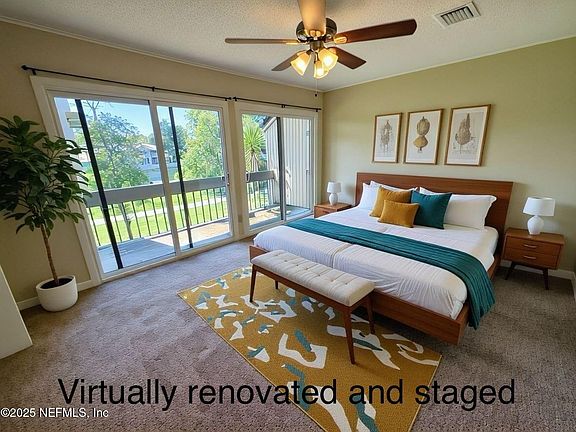 OWNER TO PAY FIRST YEAR MONTHLY CONDO FEES WITH ACCEPABLE OFFER! Spacious 3 bedroom 2.5 bath townhouse condominium centrally located on Jacksonville's Southside/Baymeadows area. The first floor offers a covered lanai entrance, separate living and dining rooms, half bath, large kitchen with refrigerator, range and dishwasher and large pantry plus laundry closet with washer & dryer included. There is another covered lanai accessed through new sliding glass doors overlooking the walking path and pond. Upstairs, there is a huge primary suite with balcony, walk-in closet and bath with tub/shower combo, 2 bedrooms and another full bath with tub/shower combo. There is one assigned parking space, a detached carport with storage closet and guest parking. Los Prados Condominium has a community pool, hot tub and a clubhouse. This unit needs cosmetics (paint, flooring) and is priced to reflect condition. There are all new windows, new sliding glass doors, new roof in August 2024, 2015 C/H/A.