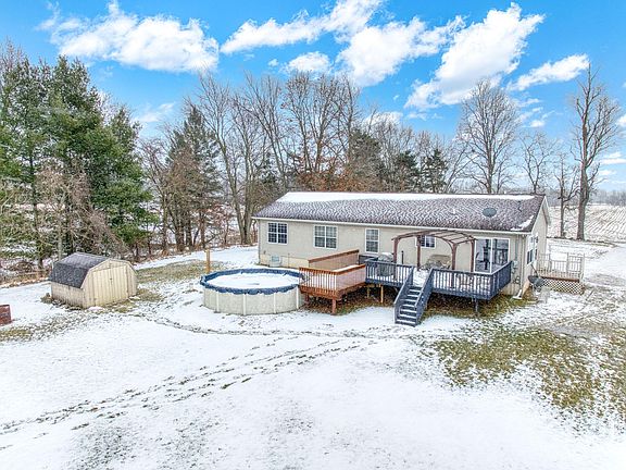 Spacious home offering 5 bedrooms, 3 full baths and an estimated 2900+sf of finished living space. Tucked toward the back of over an acre, enjoy the expansive front & rear decks, pergola and above-ground pool (new 2020!). Play set & trampoline stay. Sprawling 1680sf on the main floor, this home's open floorplan gives room to spread out. Primary suite, 2 additional bedrooms and full bath upstairs. Eat-in Kitchen flows to dining / living room. Lower Level offers 2 legal bedrooms, full bath, man cave/office and storage. Close to main roads both north and south you'll enjoy a country vibe with easy access to freeways just a short distance away. Septic pumped in 2022, Main level laundry. Ceiling fans in every spacious bedroom. Natural gas furnace. Central Air. Kitchen appliance pkg.