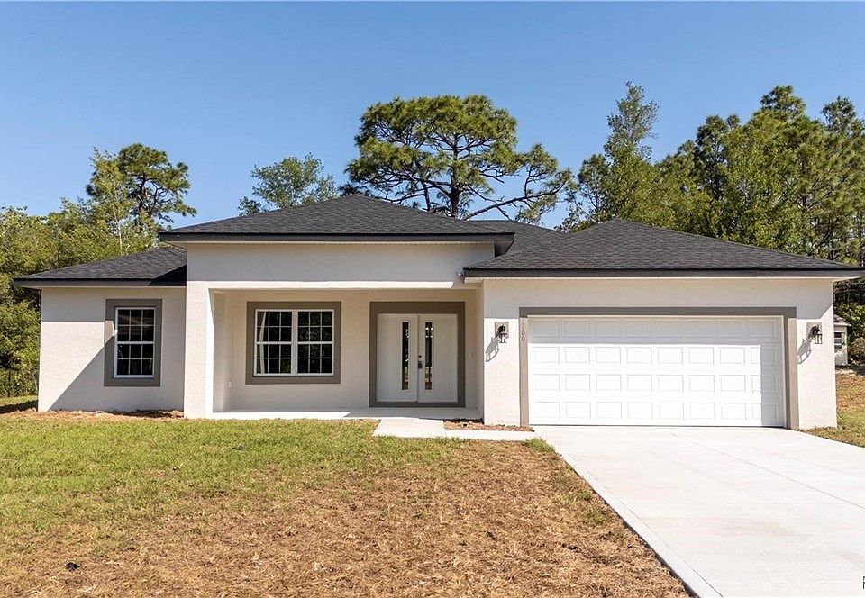 BRAND-NEW CONSTRUCTION, MOVE-IN READY! Discover this stunning and spacious 3-bedroom, 2-bath home with a 2-car garage, thoughtfully designed for comfort and modern living. Step onto the inviting covered front porch and through the elegant double entry doors into a bright and open floor plan. The living area is at the front, while the kitchen and dining spaces flow seamlessly toward the back, creating the perfect space for entertaining. This home boasts luxury vinyl plank flooring, quartz countertops, stainless steel appliances, 42" cabinets with crown molding, and a large kitchen sink. The spacious island with a breakfast bar and built-in pantry add both style and functionality. A separate indoor laundry room includes a stainless steel sink, quartz countertop, and an extended shelf for extra storage. The primary suite is a bright and airy retreat, featuring two windows for natural light, a generous walk-in closet, and an ensuite bathroom. The primary bath is designed with dual sinks, a tiled shower, and a water closet. The second and third bedrooms are situated on the opposite side of the home, with a stylish guest bathroom between them, complete with a quartz countertop and tiled tub surround. Through the sliding glass doors, step onto the expansive covered lanai, spanning over half the width of the home, and enjoy outdoor relaxation. Enjoy morning coffee on the front porch and sunsets from your lanai in the evening. Located near the Withlacoochee Trail, Withlacoochee River, golf courses, and Gulf Coast boat ramps, this home offers the perfect blend of tranquility and adventure. Schedule your showing today, you won't want to miss this one!