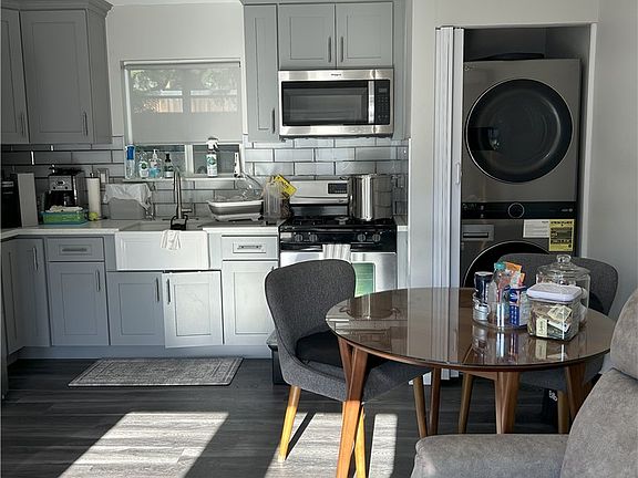ADU....Charming 650 sq ft 1BR, 1 BA unit located in quiet residential neighborhood. Proximity to 5 freeway, Burbank Empire Center and Burbank Media Center; walking distance to Woodbury University. New Contruction built in 2022. Close to Burbank Airport if you travel for work, ADU is not in the flight path so you don't hear planes landing and taking off. Unit comes with Samsung appliances: refrigerator (new), microwave range (new), washer/dryer tower (new) and gas stove. Semi furnished: Murphy bed with new queen mattress, West Elm nightstand, West Elm dining table, with 2 dining chairs and 56 in LG smart TV. AC and heating via 2 mini split units. Kitchen and bathroom have quartz countertops, farm style sink in kitchen and vessel sink in bathroom. Water filter in kitchen. Stackable washer and dryer included. Entrance via backyard gate off driveway. Internet and utilities included. Unlimitied street parking. No smoking permitted.