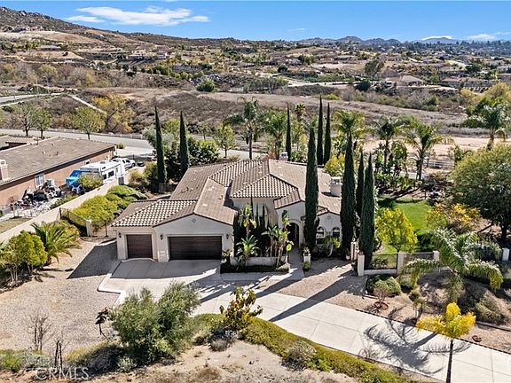 Luxury Living Meets Scenic Serenity in Stellan Ridge - Welcome to this exceptional single-story 4-bedroom plus office, 3.5-bathroom residence in the highly sought-after Stellan Ridge community of Alessandro Heights. Thoughtfully designed for multigenerational living, this spacious home offers the ideal balance of comfort, elegance, and functionality—all set against the backdrop of breathtaking views. The courtyard entry welcomes you inside to an airy, open-concept layout where natural light pours through expansive windows, illuminating the living, dining, and kitchen areas. Whether you're hosting intimate gatherings or lively celebrations, the modern chef’s kitchen—with its granite countertops, stainless steel appliances, and oversized island—serves as the heart of the home. Two walk-in pantries, a butler's pantry and abundant cabinetry make storage effortless. The luxurious primary suite is a private sanctuary, complete with a spa-inspired en-suite bath featuring dual vanities, a jetted tub, separate shower and a generous walk-in closet. Three additional bedrooms provide comfort and space for family or guests, while the dedicated office offers privacy for work or study. The finished, air-conditioned 3-car garage—with built-in cabinetry—is perfect for a home gym, workshop, or climate-controlled storage. Additional upgrades and recent improvements include a new hot water heater, new AC condenser, Flow-Tech water conditioning system, air purification, reverse osmosis system and so much more! Set on a sprawling 1.25-acre lot on a quiet cul-de-sac, the backyard is a blank canvas ready for your dream outdoor oasis—an ADU, pool, or lush garden retreat. The lot extends beyond the driveway to include a spacious pad that awaits development. Enjoy the tranquility of this family-friendly neighborhood, with easy access to parks, top-rated schools, and everyday essentials. This is more than a home—it’s a lifestyle. Don't miss your opportunity to make it yours.
