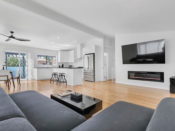 Built-in electronic fireplaceQuality white cabinetryCarrera marble flooringSustainable plantsDurable bamboo flooringFront desert landscapeStainless appliances