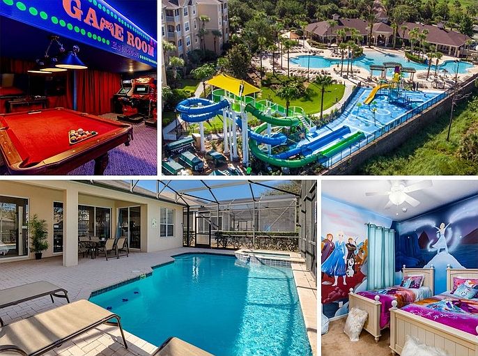 This property is a corporate rental. Please note that the monthly rental price for this property is dynamic and subject to seasonal adjustments. For an accurate quote, provide us with your intended move-in and move-out dates. Windsor Hills Resort Villa near Disney featuring 4 bed, 4 baths and sleeps up to 8 people. With themed rooms, a game room, a private pool, and hot tub, this luxury villa checks all the boxes. This luxury villa in Windsor Hills has plenty of space with 4 bedroom, 4 bath. The home features themed bedrooms, a custom arcade room, and a private pool and spa. The resort amenities including the water park are just a short walk away and are included free with your stay. Located just 10 minutes from Disney World and 25 minutes from Universal, you\'ll be located near enough to the attractions to get there quickly, while being just far enough removed that you can enjoy some space and some peace and quiet after long days at the parks and attractions. This home has a custom \"It\'s a Small World\" themed bedroom, as well as a \"Frozen themed room for kids, and a custom arcade game room with commercial-grade arcade games with free unlimited play! SunnySide Homes is a professional management company that is just a phone call or email away. POOL MAINTENANCE The pool, spa, and equipment are cleaned and maintained by a professional pool service on a regular basis. As with any machinery, mechanical issues do occasionally occur as well as the need to shock a pool when the posted pool instructions that help keep the filtration systems working properly are not followed. If a pool issue is encountered during your stay, we will alert the pool contractor and ask them to attend to the issue as soon as possible. PEST CONTROL This home is monitored and treated regularly by a professional pest control company. However, being in the sub-tropical climate of Central Florida there is still a possibility of insect intrusion from time to time. Palmetto bugs and other insects are very common in this area, and a wayward bug found inside a home is not indicative of an infestation When you arrive at the property, you should find everything you need to get your vacation started. Guests are responsible for replenishing their own additional products during their vacation stay. Here are the items you will find upon arrival: Starter Roll of Toilet Paper in Each Bathroom Starter Roll of Paper Towels in the Kitchen 2 Trash Bags 1 box of Dishwasher Detergent, and Laundry Detergent 1 bar of hand soap for each sink Washer and Dryer available Grill available for 120/ stay, delivery propane tank and cleaning included Pool heating is available at a rate of $30 USD per day, with a three-day minimum. However, please be aware that due to exceptionally cold nights or possible technical difficulties, we cannot assure the availability of pool heating at all times. A range of starter supplies provided, including toiletries, Shampoo and detergents A complimentary pack n play and highchair for the kids. Contact us to schedule a showing.