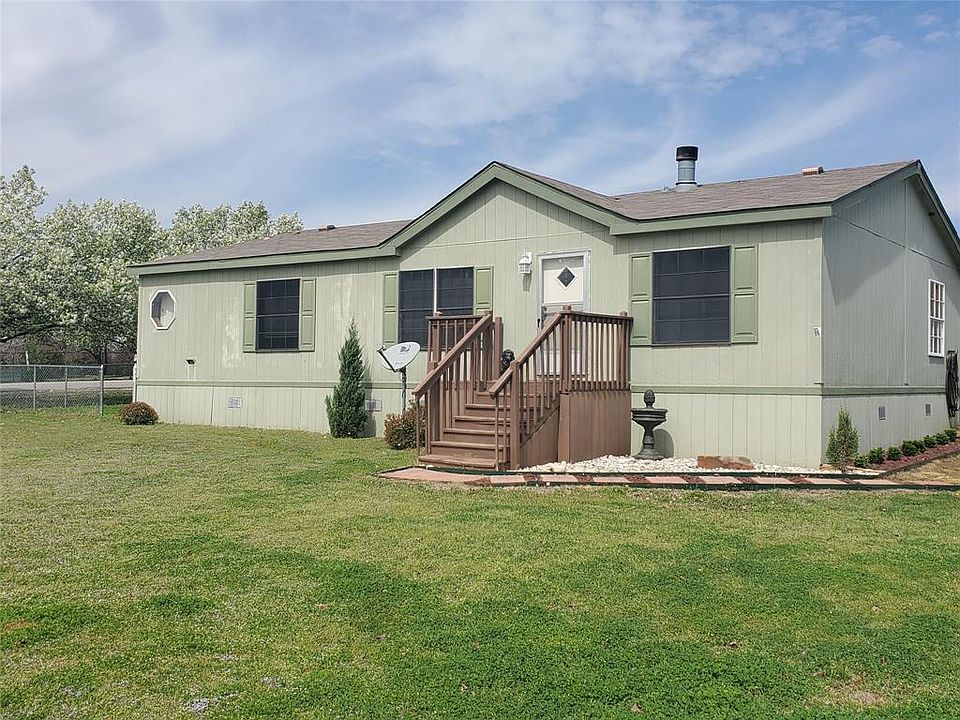 UPDATED HOME WITH Farmhouse touches -- including barn doors in the master bedroom! Are you looking for an affordable pretty home in the country on your own corner one acre lot? This is it! Home features 3 bedrooms, 2 baths, updated lighting and a large kitchen with new counter tops, plenty of cabinets & counter space, along with a COFFEE BAR! There are 2 dining areas. The large living room has a beautiful wood burning fireplace. The master retreat has new barn doors leading in to the master bath complete with garden tub, dual sinks, separate shower! There are front & back decks, completely fenced backyard, 2 storage buildings, carport, & room to park your RV or boat (since you are close to the lake!!).