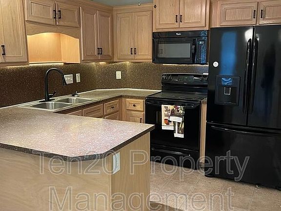 3 bedroom 2 bath home, Kitchen has refrigerator, stove, dishwasher and microwave. Carpet through out. 2 car garage. Fenced in backyard. Covered patio. Total electric.