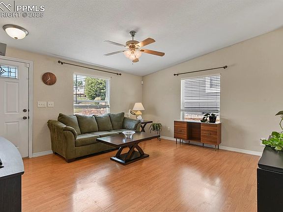 Adorable 3 Bedroom 2 Bathroom 2 Car Garage with high ceilings and wonderful natural light. The Living room is spacious and opens to the Kitching/Dining area with plenty of space to cook and entertain with a walk-out slider to the freshly painted back deck. The spacious Primary Bedroom has a private en-suite bathroom with a walk-in shower and double vanities. As you walk down the hall there are two additional bedrooms and a full main bathroom. New Central Air system installed 7/2025. Interior of home freshly painted. Refrigerator, washer and dryer purchased in 2024. Laundry is adjacent to the attached 2 car garage. This well-maintained home is within a leasehold community that offers access to fantastic amenities including a community center with lots of activities, pool and a fitness center. Land lease is combined with HOA dues. Located minutes from Peterson and Schriever AFB, close to shopping, dining and the Powers corridor. Don’t miss your chance to see it!