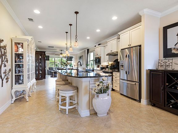 Look no further...This beautiful Steel Creek loft model home with fantastic curb appeal and paver-lined drive is located in Stone Creek, a 55+ gated golf course community packed with amenities. Carefree living awaits in this open floor plan home featuring HOA-provided lawn care, tile floors, crown molding, and a bonus loft area. The Living /Dining Room opens to the well-appointed kitchen offering a spacious island with bar height seating, upgraded stainless appliance package, pendant lighting, granite countertops, casual dining nook, and plenty of space for your storage needs. A climate-controlled sunroom opens to a screened lanai/birdcage area perfect for extra entertaining space with family and friends. Master retreat features a spacious walk-in closet with a custom-designed closet system and en suite bath with detailed tile inlay walk-in shower and granite-topped double sink vanity. The loft space with an additional bedroom and bathroom provides privacy for visiting family and friends and additional flex space to use as a game room or a media room. So much to love about this home with an expanded garage, inside laundry room, and a private nature berm directly behind. Move in and start enjoying fantastic community activities and amenities including a golf course, resort-style pools, health spa, trips and entertainment, and more!