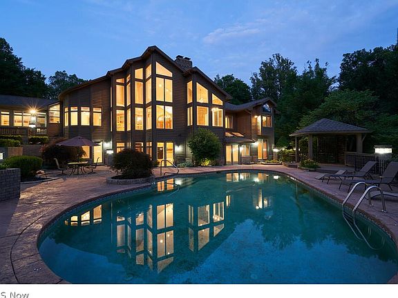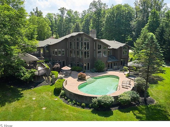 Nestled on a private 6.4-acre lot, this stunning contemporary/modern ranch-style home offers unparalleled luxury and tranquility. Boasting 4 bedrooms, 3 full baths, and 3 half baths, this architectural masterpiece features a finished walkout lower level flooded with natural light. The main level impresses with soaring ceilings and expansive windows framing picturesque views. The chef's kitchen, complete with granite countertops, stainless steel appliances (including double ovens), and a walk-in pantry, seamlessly flows into the hearth room with fireplace and formal dining area via a butler's pantry with a wine refrigerator and bar sink. The great room, anchored by a gas fireplace and 22' ceilings, has a corner wall of windows that overlooks the serene landscape. A private office with custom built-ins and fireplace add warmth and elegance. The owner's suite offers a private retreat with a sitting area (with coffee bar), spa-like bath, and oversized dressing room. The lower level features 3 additional bedrooms, 2.5 baths, a kitchenette (oven microwave, sink, dishwasher, refrigerator), media room, billiards area, and an exercise room with an in-ground spa. Outside, enjoy a multi-tiered deck with gazebo and gas grill, an inground pool, and three ponds—including a unique circular moat with an island accessible by a wooden bridge. With top-rated Hudson Schools and impeccable craftsmanship throughout, this home is a rare find in a prime location, offering both luxury and privacy for discerning buyers. New roof 2024. Down the road from Middleton Park.