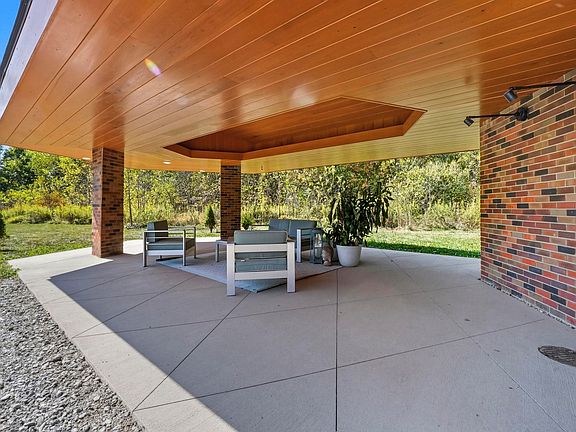Tucked away on 5 breathtaking, wooded acres, this stunning custom-built retreat offers the perfect blend of luxury, privacy, and natural beauty. A long, meandering driveway through mature woods leads to an architecturally impressive home & studio designed to showcase its surroundings. Step inside to a sun-drenched great room with soaring ceilings, expansive windows framing serene woodland views, and a striking stone fireplace as the focal point. The chef’s kitchen is a dream—featuring granite countertops, a ceramic tile backsplash, built-in appliances, and a spacious eat-up island perfect for entertaining. The fabulous primary suite is a true sanctuary with a coffered ceiling, scenic views, a spa-like bath with a large ceramic-tiled walk-in shower, double vanity, and a generous walk-in closet. The finished daylight basement offers an additional bedroom, a full bath, and abundant natural light—ideal for guests, hobbies, or extra living space. Smart home features include Crestron lighting controls and fiber optic cabling throughout the home—extending to the one-of-a-kind, Frank Lloyd Wright-inspired recording studio, professionally designed by the Wes Lachot Design Group. Every element of the studio—from every angle, surface, window covering, acoustic isolation to HVAC and 200-amp isolation transformer—was crafted with precision and comfort in mind. Outside, a cypress-covered patio area provides a serene setting for entertaining or relaxing in the heart of nature. With groomed trails, abundant wildlife, and unmatched tranquility, this extraordinary property is more than a home—it's a lifestyle.