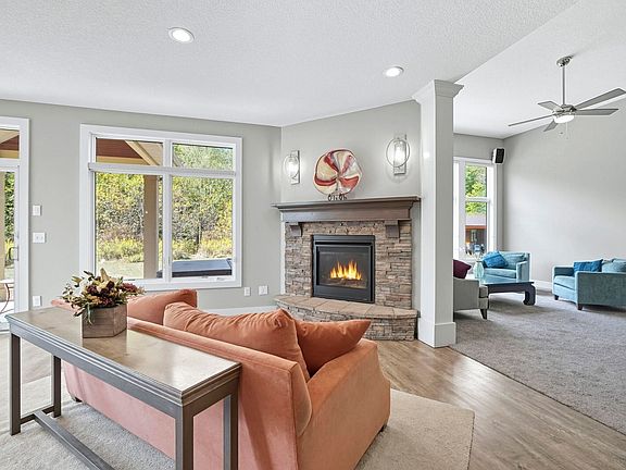 Striking stone fireplaceFinished daylight basementAbundant wildlifeMature woodsFabulous primary suiteScenic viewsLarge ceramic-tiled walk-in shower