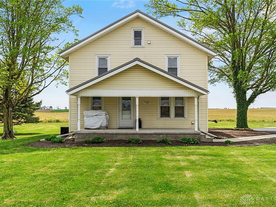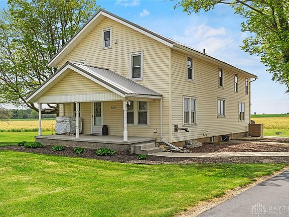 Absolutely Stunning Farmhouse in Saint Paris! This charming farmhouse offers the epitome of rustic elegance. Boasting five bedrooms and two and a half baths spread across 3,416 square feet of meticulously crafted living space. Upon arriving, you'll notice the meticulously updated landscaping from the new asphalt driveway and gravel driveway to the mulch beds and trimmed trees! This sprawling 1.5-acre lot, offers endless opportunities for outdoor enjoyment and relaxation. Whether you're savoring a morning coffee on the charming front porch or the spacious composite deck, back patio. This property provides a tranquil retreat from the hustle and bustle of everyday life. Upon entering, the beautiful luxury vinyl floors throughout the main level lead you into the first spacious living room with a private office/workshop. The dining room leads perfectly into the chef's dream kitchen, equipped with stainless steel appliances, white cabinets, sleek corian countertops, dine-in large island, and unique brick backsplash. The second family room offers a perfect space for informal entertainment and first floor laundry room with sliding barn doors and additional cabinet space for storage. The stylish, remodeled first floor half bath is accompanied by a practical mudroom. Upstairs the huge primary bedroom is magazine-esqe, freshly carpeted leading into the ensuite equipped with vinyl floors, modern vanity and faucet with an extraordinary tile standup shower and a walk-in closet. Down the hall, the other four spacious bedrooms are accompanied by its own elegant bathroom equipped with modern vanity and tile tub surround. Major mechanical systems that have been updated include a newer roof, HVAC, water heater, and water softener. The basement has been completely overhauled with new paint, windows, sump, and pit! Last but not to forget, the three car detached garage offers a great space for storage, toys and more! Schedule your showing today while this one is still available!