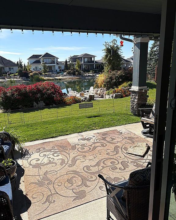 Great neighborhood and neighbors. Middle of the lake setting with over 150,000 up-grades to house. Jenn-Air kitchen appliances with double oven, quartz countertops, wrapped island with furniture post, upgraded cabinetry and hardware throughout the house, pullouts in cabinets, wood stove hood, desk in kitchen with extra cabinets and window, large pantry. Double glass doors to office/ study off great room. Extra storage cabinets in Washer/ dryer room and front bathroom. 3 full bathrooms. Solid core doors throughout. Pocket door to master bathroom with heated tile flooring, floor to ceiling marble with 2 benches, rain head and handheld shower heads and ceiling can light, under mounted sinks throughout, and ultra quite Nutone bath fans. Pre-wired for hot tub and gas line installed on back patio. Media/ smart panel with integrated network wiring. Holiday light outlets and switches. Dedicated freezer outlet in insulated garage with upgrade poly flooring. Thin brick gas fireplace surround with raised stone hearth and wood mantel and cabinets and floating shelving on both side of fireplace. Craftsman wainscot at front entry, white painted ceilings, upgraded level 6 carpet and padding, upgraded level 7 wood flooring, upgraded tile with power grout in all tile areas and shutter and window blinds through out and dry stacked masonry on the front of this house with a full pressurized irrigation sprinkler system.