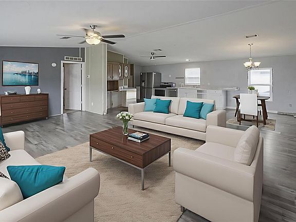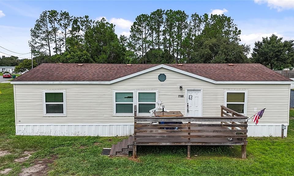 One or more photo(s) has been virtually staged. WELCOME TO OAKLAND HILLS – This 3-bedroom, 2-bathroom manufactured home sits on a spacious half-acre homesite with no HOA! You’ll love the freedom of living close to The Villages without the bond or monthly amenities fee. Imagine relaxing on your front porch, watching the sunset with a cocktail in hand, and enjoying the company of friends and neighbors who make this community special. Inside, the home showcases the true great room concept – with the kitchen, dining, and living spaces flowing together so you’re always connected, whether entertaining or simply enjoying everyday life. Recent upgrades add incredible value and peace of mind, including a brand-new A/C system with all new ductwork under the home, hurricane-rated windows throughout, a roof replaced in 2019, new septic system lines expanded from two to four, and new tie-downs installed under the home in 2023. The kitchen features brand-new appliances, and outside you’ll enjoy a huge 10×16 deck that’s perfect for entertaining. For added convenience, the property also includes two 30-amp RV hookups with water and sewer connections. While this home is being sold As Is and offers opportunities for your personal touches, the major improvements have already been completed, making it move-in ready. Beyond the property, you’re just minutes away from The Villages’ shopping, restaurants, and entertainment. This is an affordable chance to achieve homeownership in a location that blends space, convenience, and updates you won’t often find at this price. Bring your vision and see the potential today!