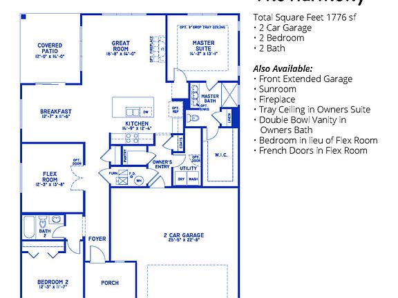 Enjoy maintenance free living in this Harmony villa. Featuring 3 bedrooms and 2 bathrooms and a garage with extra storage. The open concept layout has a great room with contemporary fireplace, breakfast and kitchen area leading to a sunroom and outdoor patio providing plenty of natural light. The Owner's Suite includes a custom tiled shower and spacious walk-in closet. The kitchen includes granite countertops, navy cabinetry, GE stainless steel appliance package including refrigerator and entertaining island. Olthof Homes builds high performance energy efficient homes with a third-party certified energy rating (HERS rating). 10-year structural warranty, 4-year workmanship on the roof, Low E windows, and Industry Best Customer Care Program.