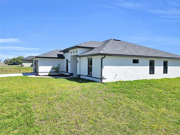 Your Country Oasis Awaits! 4 BR, 3 BA plus den home on 1.25 acres is ready for its new owner. 2 Master Suites, luxury Kitchen with granite countertops, center island, and stainless-steel appliance package. Primary Master Suite offers spacious walk-in closet and his-and-her sinks. Relax on the screened lanai with pavers, outdoor kitchen with sink and space for a fridge, room for pool, detached garage, or barn on this expansive lot. The front yard features a metal fence with two gates, and there's ample room to park semi-trucks or other large vehicles. Barnyard animals are welcome (some restrictions apply). Easy access to SR80,SR82, Seminole Casino, and the airport. The seller will generously contribute $7,500 toward closing costs, making this dream home even more attainable!