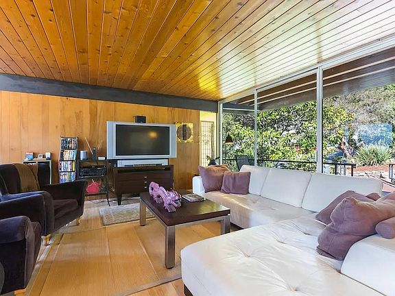 This steel frame home has walls of glass and is built on top of two steel I-Beams that rest ABOVE a creek ... yes, the creek runs under the home! The home was designed by Beverly David Thorne, the last living architect to have participated in Arts & Architecture's famous Case Study Houses (1945-1966), a project to introduce modern architecture to the public. He designed houses, most on steep hillsides and built out of steel. He is most famous for the "Brubeck House" that was featured on the Ed Sullivan show. With the exception of updated flooring, appliances and the downstairs addition, this house is in its original condition.