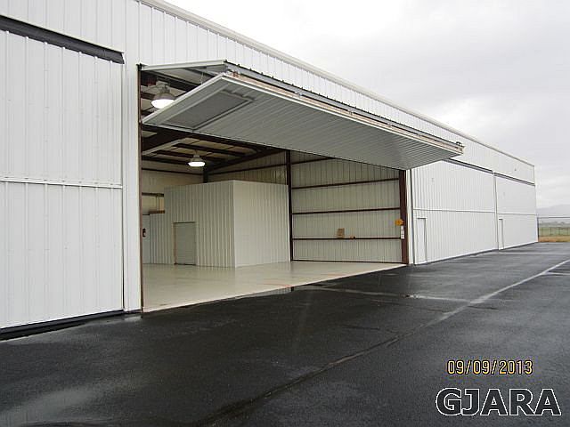 Nice condo hangar at Grand Junction Regional Airport with bi-fold door + man door, storage, office area and restroom. The best heating system and door opener on the market today! Individually metered for gas and electric. Located in the Clear Blue Sky Condominium Hangars.