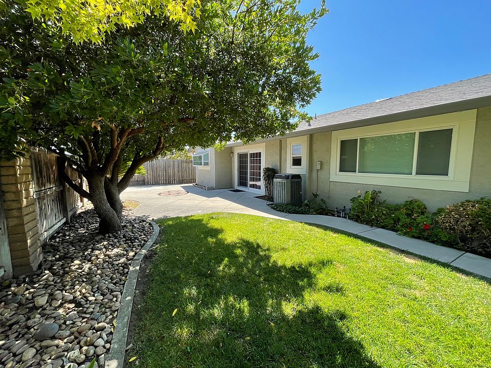 Imagine yourself in this bright single-level Vacaville home with open floor plan! Stay comfortable year round with air conditioning, dual pane windows, a cozy gas fireplace, and central heat. The kitchen has expansive solid-surface countertops, a garden window, and ample storage with pullout shelves throughout. Enjoy the convenience of indoor laundry room hook-ups, a walk-in master closet, and a 2-car garage. The garage has extensive built-in shelving with additional exterior space for a storage shed. There is plenty of street parking available as well and a widened driveway to park your boat or sport vehicle. This attractively landscaped property with large front and back patios is in a great location near multiple parks and trails. Minutes from Travis, Kaiser, Amtrak, and 80 - It won't last long!