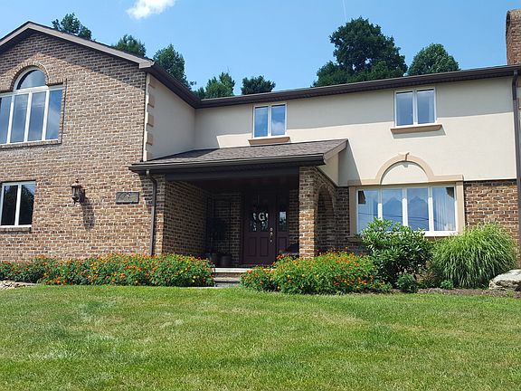 Brick and dryvit two story gorgeous custom built home with four bedrooms (2 master suites), 3 full baths and 1/2 bath, updated kitchen w/poured solid countertops, dining room with a stone wood burning fireplace, addition on the second floor consists of a huge master bedroom with a beautiful view from the front window, large walk in closet and storage room & full bath. Great home for entertaining inside and out. Cement covered front porch and cement and paver patio in rear. 12'x20' shed. This is truly a beauty. Call for a personal tour.