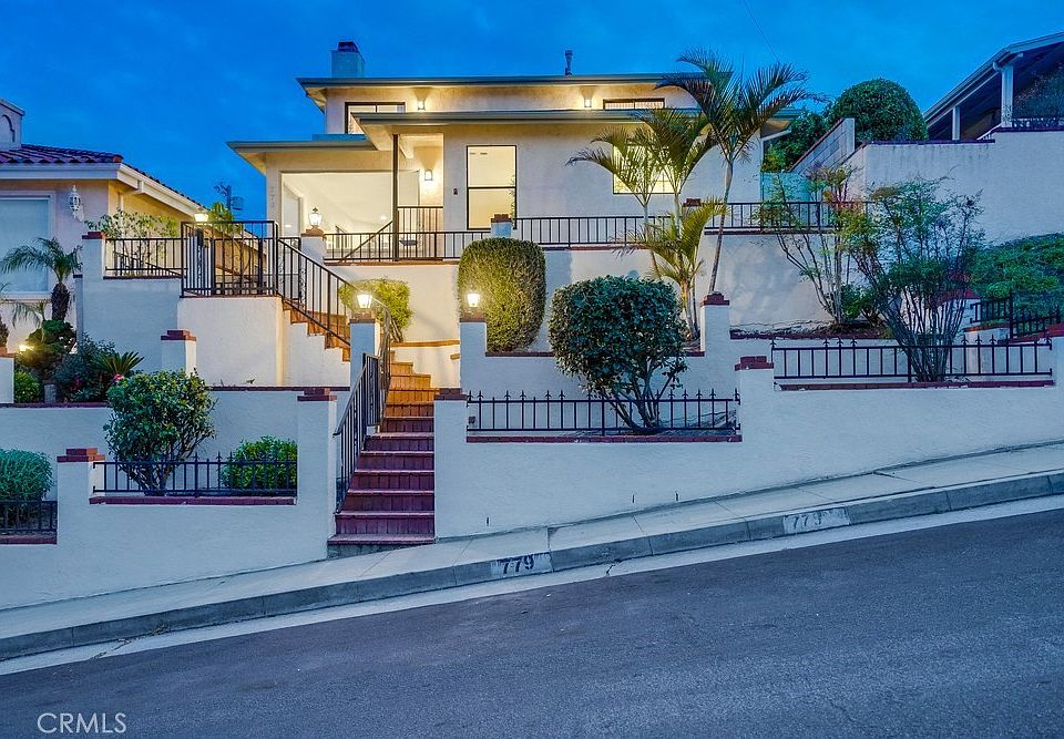 How would you feel waking up to wonderful sunrises and beautiful views of the active LA Harbor? Watching the ships sail through Angels Gate, gazing at the snow-capped mountains or maybe the beautiful twinkling lights after the sun goes down? Well, this special home perched high up on a hill offers you that opportunity. Imagine enjoying breathtaking harbor, mountain, city light & ocean views from the living room, kitchen, master suite and rear yard while also enjoying the privacy that comes with living way above street level. As you make your way from the sidewalk, up the stairway and towards the gated front yard area the view will open up further and further with each step you take. Once you reach the front yard, you'll be captivated by the bird's eye views. Upon entering the home you'll encounter the bright sun-drenched living area featturing a fireplace and large picture window to capture the fabulous vistas. This area also opens up to the dining area and large family style kitchen with natural wood cabinetry and tile counters. This level also features a full bath, spacious bedroom, office and the laundry area. Solid wood staircase takes you to the top level that features the master suite with walk-in closet, full bath, balcony and amazing panoramic views. Across the hall is a junior suite that also offers a walk-in closet, 3/4 bath and a balcony to enjoy the views. Interior has been freshly painted and pluch new textured carpeting has been installed in the living area and lower bedroom. What about the systems? Well it has central heat and air conditioning, copper plumbing (where visible, buyer to verify) and a brand new roof is going on next week. There's a large rear yard with concrete patio, vegetable gardens and views. For parking there's a 2 car detached garage on the alley and gated RV parking next to it. The alley makes constructing an ADU super easy and one built over the garage would offer spectacular views. In addition to the views you'll enjoy the fresh air and cool ocean breezes that come with living in this area of San Pedro. If you're looking for a view and a spacious home without the heavy price tag, this home is for you. HURRY!!
