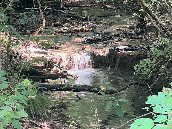 Cooling creeks, waterfalls. springs, artesian wells, towering hardwoods, and a cabin. The ingredients for "back to nature" living. Plenty of water to irrigate your garden. The 2400 sf shop has a mechanics lift, perfect for working on vehicles. A road to the back of the property leads to a cleared site for building your dream home with views of rolling hills.