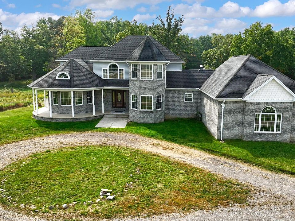 SEVERAL UPDATES done over the last month: Septic cleaned out, A/C checked, Thermostat Upgraded. Roof & Siding to be done soon with a 1 Year warranty on Roof thru Kanga. Spectacular, 15-acre Estate. Wide open floor plan. Large spacious living room. Natural Stone fireplace in the family room. Extra spacious informal dining room with a pan-up ceiling. HIGHLY desired Butler's Pantry!! The kitchen features a large island. Many large windows to look out over the expansive property. Main floor laundry. The master has a bath area with a jetted tub and a balcony. Walk-out basement. Pole barn has 3 horse stalls, 2 pens & a tack room. Wooded back with trails, pasture land & a pond. This is a one-of-a-kind property with SO much potential.