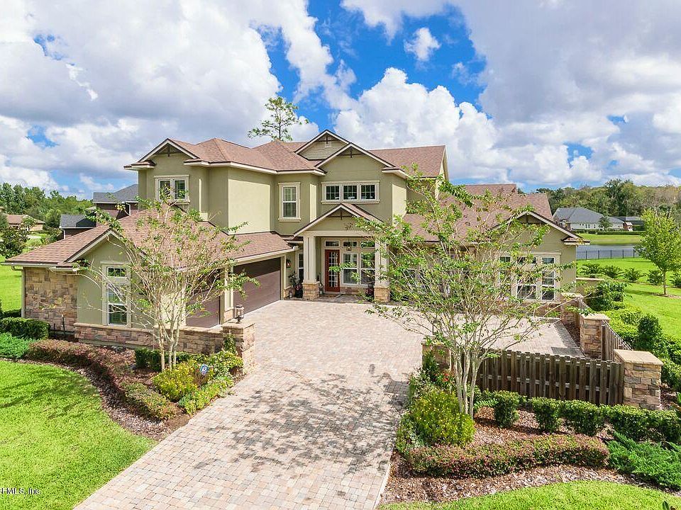 This is the best of both worlds. Newer construction in one of the best country club communities in Northeast Florida. This 5bd/4.5ba home was built in 2015 and has loads of beautiful upgrades, high-end finishes and designer lighting. Walk into the foyer and see the dramatic glass chandelier. . There are beautiful wood floors downstairs that extend to the master bedroom. The formal living room has a 20' coffered ceiling, gas fireplace and a wall of windows overlooking the lake. The kitchen is a chef's dream with sturdy and gorgeous quartz countertops, gas cooking island, subway tile backsplash, under cabinet and above cabinet lighting, farm sink and 42'' cabinets with crown molding; soft closed drawers and stainless steel