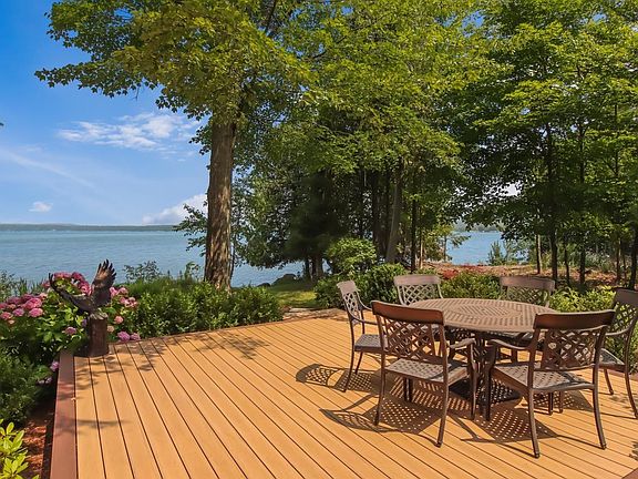 ONE-OF-A-KIND ELK LAKE SETTING! Welcome home to a magical property on 596 feet of sandy frontage and 7.34 acres. This is an ideal family compound waiting for you to create new family traditions and memories of lifetime on the shores of Elk Lake. As you enter the grounds you will be impressed with the privacy, wooded setting, and serenity this estate offers. The main home is enhanced by an open living room with a stone fireplace, custom built-ins and a vaulted wood ceiling. The modern style kitchen features expansive Grabil cabinetry, island with bar seating, stainless appliances, built-in desk and more. The dining room will be the place for memorable meals and lively conversations. The primary suite with private bath is on the main floor with 3 additional bedrooms upstairs plus a sitting area perfect to curl up with your favorite book. Sit on your deck and watch the sunrise over your waterfront paradise while you have your morning coffee. Invite friends and family to join you to relax amid the tranquility of Elk Lake, listening to the sounds of loons and waves lapping the shoreline. Your guests will appreciate having their own space with a guest house plus three waterside log cabins each with their own unique character. The guest house features 2 beds and 1 full bath and is set up for year-around living. Mature hardwoods, natural landscaping with native plants and flowers and plenty of outdoor living spaces for entertaining. Abundant storage with two storage barns plus a 2-car attached garage on the main home. Main home and guest house serviced by natural gas. World class boating and water adventures will be yours to enjoy on the Chain-of-Lakes including Elk Lake, Torch Lake, Lake Skegmog, Clam Lake, and more. Ideal location places you close to Traverse City, Horse Shows, golf, skiing, shopping, dining, quaint waterside communities. Seize the chance to come home to Elk Lake!