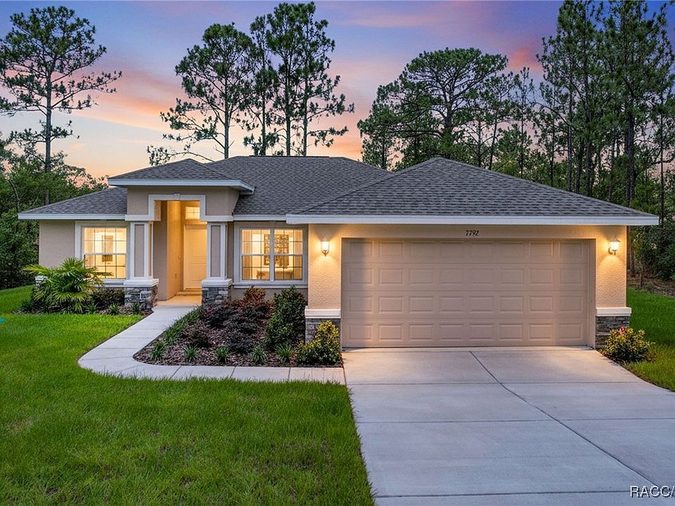 One or more photo(s) has been virtually staged. This beautiful new construction home in Citrus Springs is nearly 1,600 SQFT and packed with features! It boasts cathedral ceilings with plant shelves, an oversized living room, and solid surface countertops. The kitchen includes a cozy nook, a pantry for extra storage, and plenty of natural light. The primary bedroom offers a spacious walk-in closet and a full tile step-in shower, enhancing both comfort and functionality. Outside, the home is equipped with a full irrigation system, making lawn care simple and efficient. Conveniently located just 10–15 minutes from Dunnellon and the scenic Rainbow River, 15–20 minutes from Crystal River and the Gulf, and 10–15 minutes from the new Shoppes at Black Diamond—featuring Target, Starbucks, and more—this home offers the perfect balance of peaceful living and accessibility.