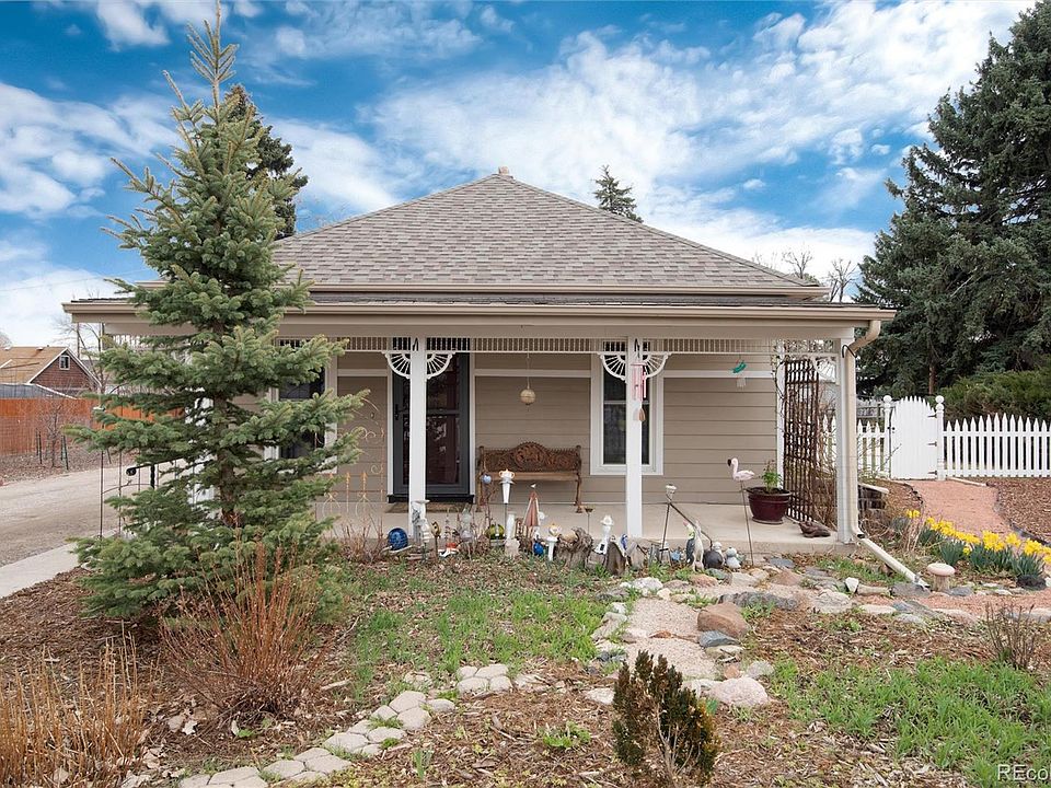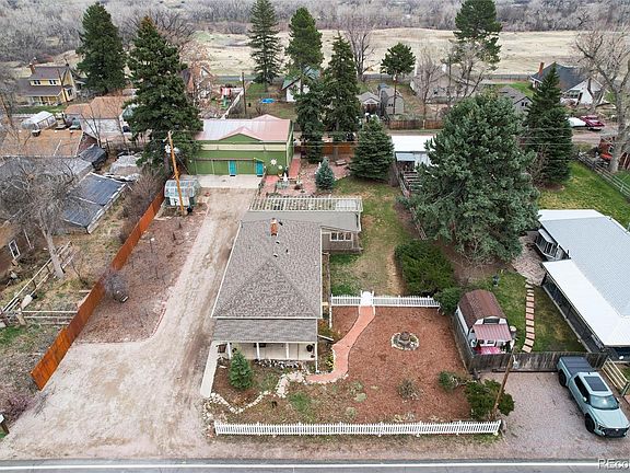Step into the charm of yesteryear with this exquisitely restored 1911 home in Louviers, Douglas County's only Nationally Designated Historic District. Meticulously rebuilt by a master carpenter and an artist, this single-level gem blends timeless character with contemporary luxury. Situated off tree-lined historic Louviers Boulevard, the home features a picturesque gingerbread porch and a Victorian picket fence that enchants passersby.