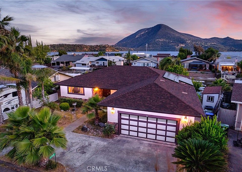 Just in time for summer, cast a line right off of your private floating dock in desirable Kona Tayee! Veterans look no more, this is a one of a kind opportunity to assume the current loan at under 3%! This stout true 4 bedroom 3 bathroom home screams summer vacations with family and friends. Step into the formal entry, with primary suite 1 of 2 to your left. Down the hall will lead you to the open living/kitchen area with wood burning fireplace, patio doors, and open kitchen with granite counters and breakfast bar. Off of the living room is the enclosed dining area, perfect for entertaining throughout all seasons. To the right of the living room is the second primary suite, guest bath, and two additional guest bedrooms. All bathrooms offer dual vanities, and shower/tub combo. The interior was just refreshed with all new flooring and paint throughout, updated kitchen appliances, and new walk in shower in master bath. Off of the enclosed patio is the hot tub with concrete pad, and brand new tuff shed for additional storage. The floating dock gives plenty of room for 2 boats to tie up, with an air lift and cover, ideal for winterizing your boat, as well as room for a patio set, and kayak storage. The attached garage is spacious with storage shelves and overhead storage area, laundry, and additional fridge. The home is on Solar, with a payment substantially lower than the PGE bills were. Kono Tayee offers many amenities to its residents; including a private beach, dock, bbq pits and boat rap. Come see what lake living in beautiful Lake County is all about!