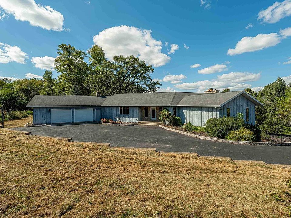 Stylish, spacious & serene! This 3 bed, 3.5 bath ranch w/ an oversized 2 car garage sits on 3.25 private acres with countryside views for miles. Inside you?ll find a welcoming foyer, vaulted great room w/stone fireplace, dining room with expansive views, large eat-in kitchen, cozy den w/fireplace, half bath, generous laundry/utility room, updated full bath & a primary suite w/ a remodeled bath. Bright spaces, built-ins, newer windows & new flooring add appeal. The walk-out LL offers 2 more bedrooms, full bath, sprawling family room & huge rec room, ready for your finishing touches, and ample storage. Bonus: new gutters w/ leaf guards, newer well, etc. Schedule your showing today!