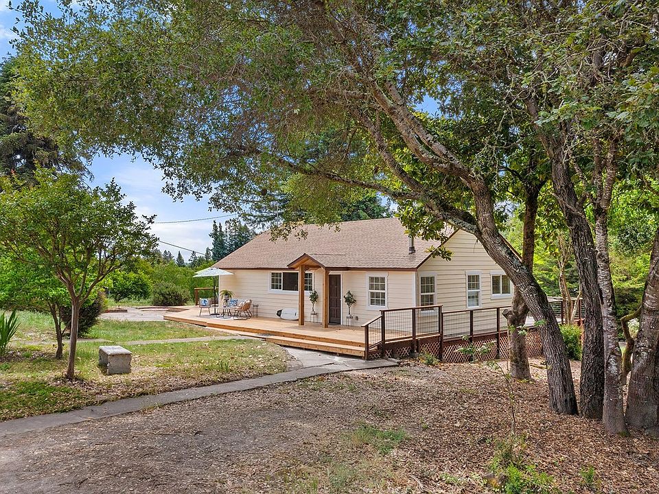 This light and bright property is ideally located near the heart of Sebastopol, offering the perfect blend of tranquility and convenience. Nestled down a private driveway, the residence provides 1175 sq. ft. of impeccably designed living space tailored for modern living. The home features two bedrooms and two remodeled full bathrooms, offering ample space for relaxation and comfort. This beautifully remodeled home features an upgraded kitchen, modern bathrooms, new decking, electric heat, and AC for year-round comfort and the potential to go fully solar-powered. The kitchen seamlessly connects to the dining and living rooms, extending directly to a new deck, perfect for entertaining or relaxing while enjoying treetop views of the surrounding area. The expansive 0.67-acre lot features roses, herbs, lemons, pears, and an area of blank canvas to manifest your dreams. It's an ideal site for an ADU, outbuildings, pool, gardens, and dreams (Buyer to verify). This property is bathed in sunshine and has coveted southeastern sun exposure. This location's perfect balance of city and country has it all just minutes to downtown Sebastopol, Barlow, Bodega Bay, orchards, award-winning restaurants, and Wineries; everything vibrant Sebastopol has to offer.